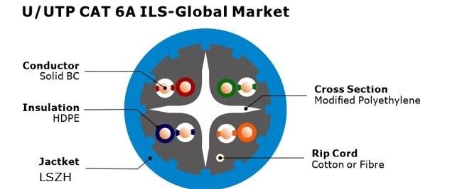 | Destacar: | CAT 6A do revestimento U UTP de LSZH,Cabo ethernet Unshielded de Cat6a,CAT de cobre 6A do condutor U UTP |